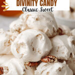 Old-Fashioned Divinity Candy is a classic Southern treat featuring a fluffy, sweet meringue made from egg whites and sugar syrup, mixed with crunchy pecans and flavored with vanilla. This candy has a light, airy texture and a melt-in-your-mouth sweetness, perfect for holiday gifting or special occasions.