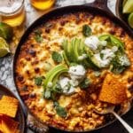 Finish by serving the dish warm with your favorite garnishes—sour cream or plain Greek yogurt, chopped scallions, sliced avocado, fresh basil or cilantro, and plenty of lime wedges. The acidity and creaminess from the toppings keep the flavors bright and balanced. Dig in and enjoy!
