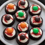 I store leftover Oreo eyeballs in an airtight container in the fridge, laid out in a single layer so they don’t stick together. They keep well for up to 3 days — though in my house, they rarely last that long!
