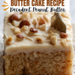 This Peanut Butter Cake is a moist and flavorful dessert combining the rich taste of creamy peanut butter with a soft, tender crumb. Topped with a luscious peanut butter frosting and garnished with roasted peanuts, this cake is perfect for peanut butter lovers seeking a decadent treat.