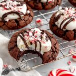 Delightfully rich and festive Peppermint Hot Chocolate Cookies featuring melted semi-sweet chocolate, cocoa powder, and peppermint extract. Topped with melted marshmallows and crushed peppermint candy, these cookies offer a perfect holiday treat with a gooey center and a chocolate drizzle finish.