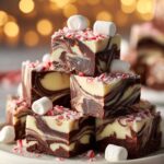 This Peppermint Swirl Fudge recipe combines rich semi-sweet chocolate with a festive peppermint-flavored white chocolate swirl, topped with crushed peppermint candies. Perfect for holiday treats, this creamy, melt-in-your-mouth fudge offers a delightful peppermint twist and beautiful swirl presentation, chilled to set for a firm, sliceable consistency.