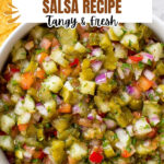 I store leftover salsa in an airtight container in the fridge, tightly covered. It stays fresh and flavorful for about 3-4 days. You’ll want to give it a quick stir before serving again because the pickle juice settles a bit.