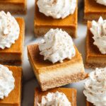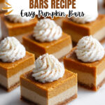 Delicious Pumpkin Pie Bars with a buttery shortbread crust, creamy spiced pumpkin filling, and topped with freshly whipped cream. Perfect for holiday gatherings and cozy autumn treats.