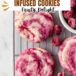 Delicious gluten free raspberry cookies featuring a unique raspberry syrup and fresh frozen raspberries for a vibrant pink marbled effect. These large, soft cookies are perfect for a sweet treat with fruity flavor and a tender crumb. The recipe is carefully designed to prevent spreading by freezing the dough before baking.