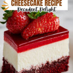 - Visual Appeal: The striking red cake combined with the creamy white cheesecake and vibrant strawberries make this dessert an eye-catching centerpiece.