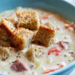 Reuben Soup is a comforting and hearty twist on the classic Reuben sandwich, combining tender corned beef, tangy sauerkraut, and creamy Swiss cheese into a rich and flavorful soup. Perfect for cozy dinners, this soup features a savory broth enriched with cream and topped with crispy marbled rye croutons.
