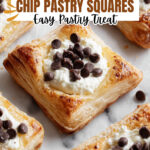 Delight in these Ricotta Chocolate Chip Pastry Squares, a flaky and indulgent treat featuring creamy ricotta cheese and luscious chocolate chips nestled in buttery puff pastry. Perfect for breakfast, dessert, or a sweet snack.
