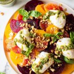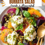 This Easy Roasted Beet and Burrata Salad combines sweet roasted beets with creamy burrata cheese, fresh citrus slices, crunchy pistachios, and vibrant basil oil for a refreshing and elegant dish perfect as a light lunch or appetizer.