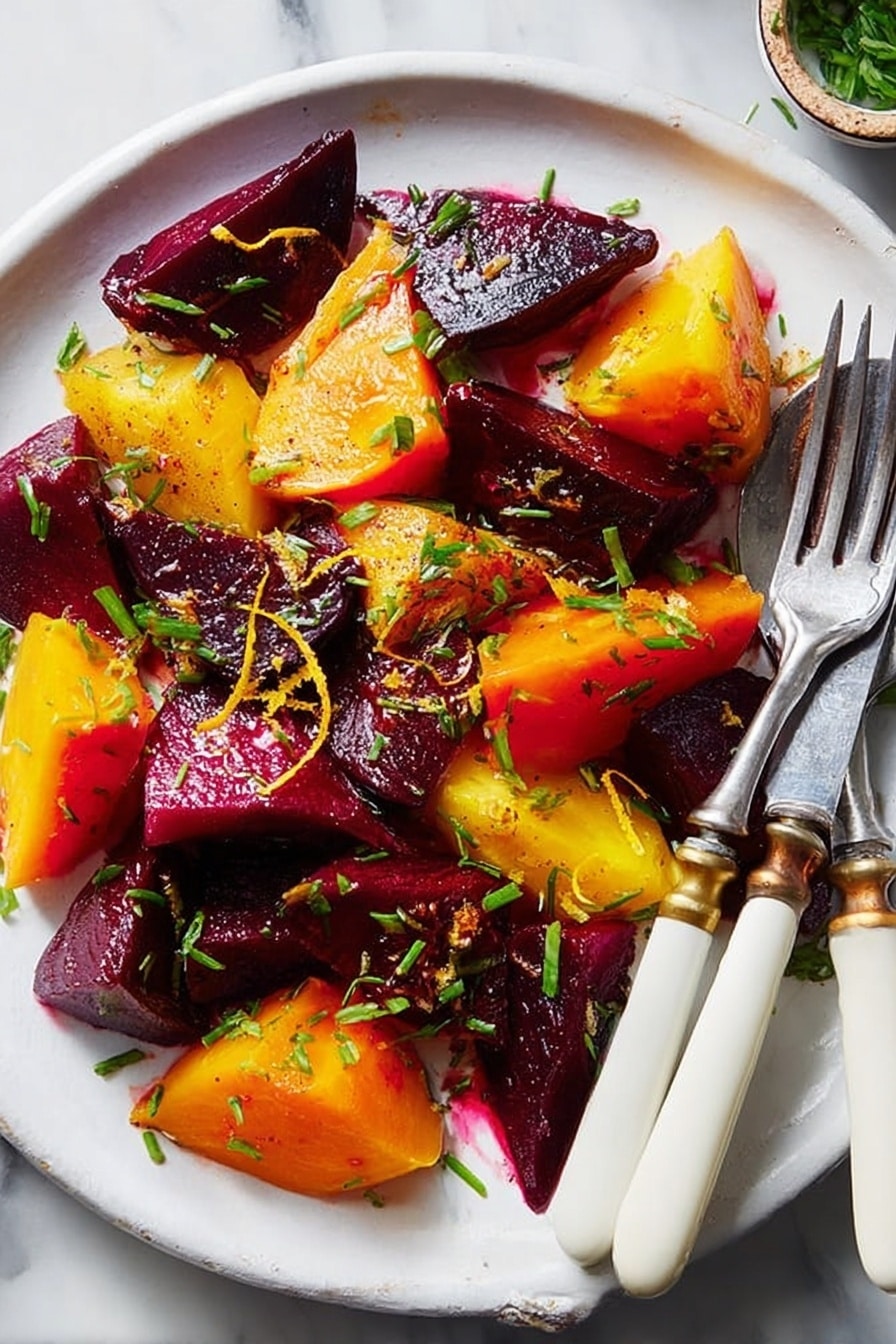 To reheat, gently warm them in a skillet with a splash of olive oil, or pop them in the oven at 350°F wrapped in foil. I avoid microwaves because they tend to dry out the beets or make them rubbery.