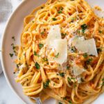 This Roasted Garlic and Red Pepper Fettuccine Alfredo is a vibrant twist on the classic creamy pasta dish, featuring smoky roasted red peppers and mellow roasted garlic blended into a rich Alfredo sauce. Perfect for a comforting vegetarian dinner that impresses with both flavor and color.