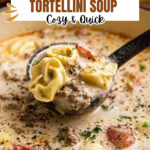 A hearty and creamy Sausage Tortellini Soup combining savory ground pork sausage, fire-roasted tomatoes, cheese tortellini, and fresh basil in a rich broth, perfect for a comforting meal.