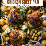 This Sheet Pan Greek Garlic Butter Chicken and Potatoes recipe is a flavorful and easy one-pan meal featuring tender chicken thighs or breasts roasted with baby potatoes, fresh herbs, garlic, and tangy lemon. Topped with a vibrant olive and herb dressing and creamy feta cheese, it’s a perfect Mediterranean-inspired dinner that comes together quickly with minimal cleanup.