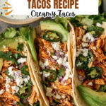 These Shredded Chicken Tacos with Creamy Chimichurri Sauce are a vibrant and flavorful meal featuring tender seasoned chicken, a zesty homemade chimichurri sauce, and fresh toppings. Perfectly cooked chicken is combined with sautéed jalapenos and onions, then layered with crisp romaine, creamy avocado, and tangy feta in warm flour tortillas for a satisfying and delicious taco experience.