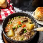 Slow cooker Irish lamb stew with barley is a comforting and hearty dish featuring tender lamb shoulder, vegetables, and pearl barley slow-cooked to perfection. This traditional Irish stew makes a satisfying main course, ideal for chilly days.