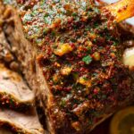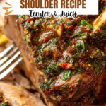 This Slow Roasted Lamb Shoulder recipe features a tender and flavorful lamb shoulder cooked low and slow to perfection. It is accompanied by a zesty, chunky mint sauce made with fresh herbs, garlic, sun-dried tomatoes, and lemon juice. Perfect for a comforting dinner, this dish offers a beautifully roasted lamb with a crispy top and juicy interior.
