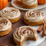 Delightfully soft pumpkin cookies topped with a creamy cinnamon frosting, perfect for fall celebrations or anytime you crave a spiced sweet treat. These vegan cookies combine pumpkin puree and warm spices for a moist texture, then are finished with a luscious cinnamon-infused vegan buttercream frosting.