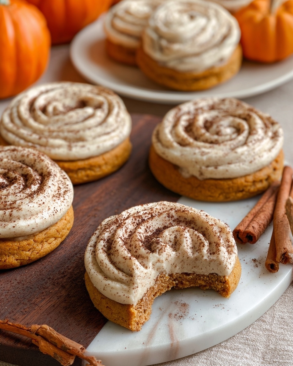 When I serve these cookies, I like to keep it simple but festive: a light dusting of pumpkin pie spice or ground cinnamon on top adds a lovely aroma and visual appeal. Sometimes I also sprinkle crushed toasted pecans on the frosting for a little crunch and a nutty flavor complement.