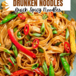 Drunken Noodles is a flavorful Thai stir-fry dish featuring wide rice noodles, marinated chicken, and vibrant vegetables tossed in a savory and slightly sweet sauce with aromatic Thai basil and chili for a spicy kick. Perfect for a quick yet satisfying dinner.