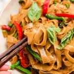 Drunken Noodles is a flavorful Thai stir-fry dish featuring wide rice noodles, marinated chicken, and vibrant vegetables tossed in a savory and slightly sweet sauce with aromatic Thai basil and chili for a spicy kick. Perfect for a quick yet satisfying dinner.