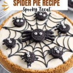 Spider Pie is a festive Halloween cheesecake-style pie featuring a graham cracker crust, creamy pumpkin-spiced filling, and creative spider decorations made from Oreos, candy eyes, and pretzels. Perfect for spooky celebrations, this no-bake treat combines sweet and spiced flavors with whimsical spiderweb frosting details.