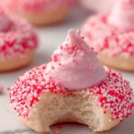 Strawberry Kiss Cookies are soft, festive treats perfect for Valentine’s Day or any special occasion. Made with Funfetti sugar cookie mix and cream cheese, these cookies are rolled in pink or white sanding sugar for a delightful crunch and topped with Hershey’s Strawberry Ice Cream Cone Kisses, offering a creamy strawberry center that melts perfectly into the soft cookie base.
