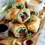 These 20 Minute Thai Basil Beef Rolls are a quick and flavorful appetizer or light dinner option. Ground beef is cooked with garlic, fresh ginger, Chinese five spice, tamari, and sweet Thai chili sauce, then wrapped in warm flour tortillas with fresh herbs, cucumbers, and crunchy peanuts. Served with chili paste and toasted sesame oil, these rolls bring vibrant Thai-inspired flavors to your table in just 20 minutes.