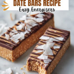 These Toasted Coconut Date Bars are a delightful vegan snack combining the natural sweetness of medjool dates with crunchy toasted coconut flakes and rich dark chocolate. Perfectly chewy with a drizzle of chocolate and a sprinkle of coconut, they make a wholesome treat or on-the-go energy bite.