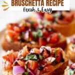 Start by dicing your roma tomatoes and red onion into small, uniform pieces—they’ll mix better and taste balanced in each bite. Toss them into a bowl with minced garlic, chopped basil, olive oil, salt, and pepper. Give it a gentle toss to combine and refrigerate for at least an hour if you can. I know waiting feels hard, but it really helps the flavors to marry and amps up that fresh brightness you want.