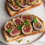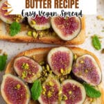 This Vegan Cinnamon Butter paired with Breakfast Fig Toast is a deliciously simple and wholesome breakfast treat. The cinnamon-spiced vegan butter spreads creamy sweetness over toasted sourdough, topped with fresh figs, crunchy pistachios, flaky sea salt, and a hint of fresh mint for a perfect balance of flavors and textures.