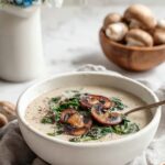 This Comforting Wild Mushroom, Caramelized Onion and Kale Soup is a hearty and flavorful dish perfect for a cozy meal. Featuring a savory blend of caramelized sweet onions, earthy shiitake and baby bella mushrooms, tender kale, and a creamy coconut finish, this gluten-free soup offers rich textures and comforting aromas. Perfect for vegetarians and those looking for a nutritious, warming bowl of goodness.