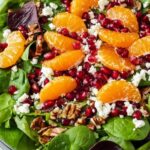 A vibrant and refreshing Winter Salad combining mixed spring greens, juicy mandarin orange segments, tangy pomegranate seeds, creamy feta cheese, and crunchy candied pecans, all tossed in a sweet and tangy homemade dressing with honey, Dijon mustard, apple cider vinegar, and shallots. Perfect as a light meal or a festive side dish.